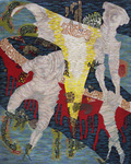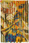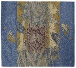 2013A collage in the form of a tapestry composed of different textiles and bracelets and necklaces..